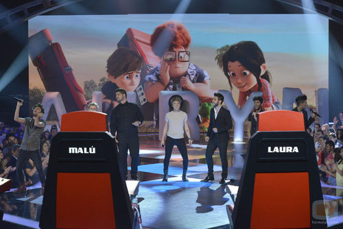 Blas Canto, Carlos Marco, Álvaro Gango y David Lafuente, más conocidos como Auryn actuando junto los finalistas de 'La voz 3'