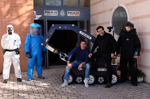 Emmanuel Esparza, quien interpreta a Víctor en 'Servir y proteger' posa junto a Fernando Soto (Rubén Redondo) para el calendario solidario de esta serie producida por RTVE y Plano a Plano.