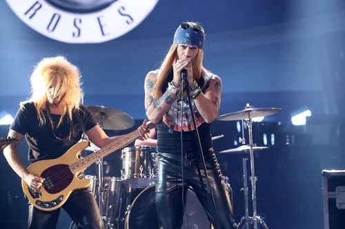 Carlos Baute, concursante de 'Tu cara me suena', imita al grupo Gun's n' Roses e interpreta su canción "Sweet child o'mine" en la cuarta gala del concurso.