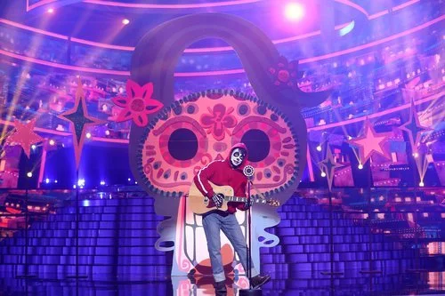 El cantante tuvo que hacer un duro trabajo para meterse en la piel de un dibujo animado y cantar un medley de la película con las canciones "Recuérdame" y "Un poco loco".