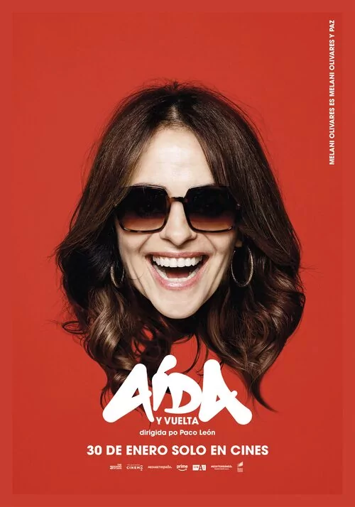 'Aída y vuelta' presenta carteles individuales con cada uno de los protagonistas de la película y este es el de Melani Olvares.