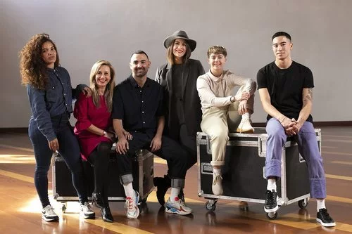 Carla Cervantes, Sandra Egido, Raymond Naval, Iker Karrera y Ruth Prim posan junto a Marta Moure, directora de los castings del talent.