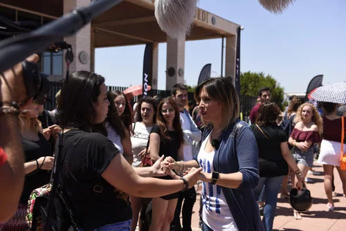 Gisela ('OT 1') coge las manos de una aspirante en el casting de 'Operación Triunfo' en Barcelona