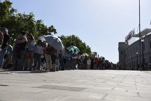 Colas y colas de gente se agolparon a las puertas del casting de 'Operación Triunfo' en Barcelona llegando a utilizar paraguas para protegerse del sol y del calor.