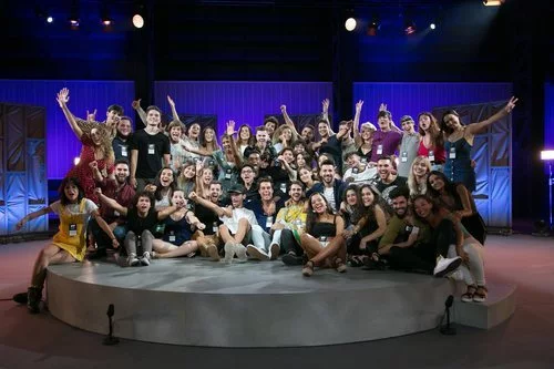 Los 85 participantes que llegaron hasta el casting final de 'OT 2018' posan en el plató que acogió la última prueba de selección con Noemí Galera.