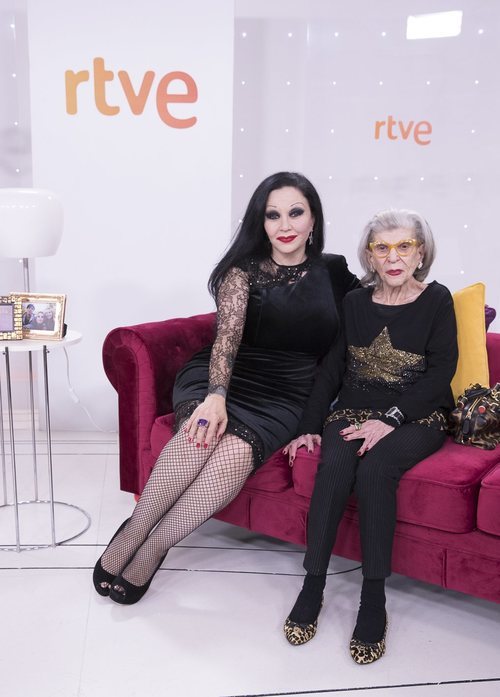 Alaska y su madre América durante la presentación de 'Cena con mamá'