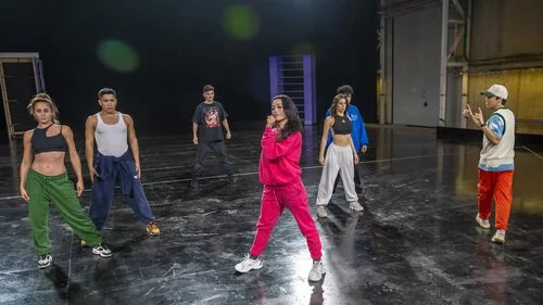 Chanel Terrero, la representante de España para Eurovisión 2022, ensaya uno de los pasos que tiene la coreografía de 'SloMo' junto a su equipo.