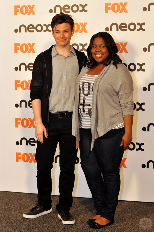 Los actores de 'Glee' Chris Colfer (Kurt Hummel) y Amber Riley (Mercedes Jones) durante su visita a Madrid de la mano de FOX y Neox.
