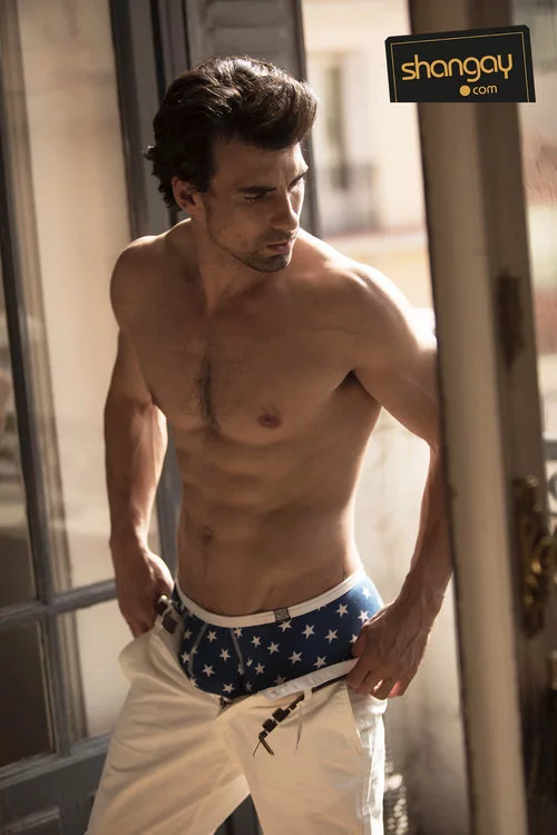 Christian Sánchez posa muy sexy en pantalones y sin camiseta. Además, se le pueden ver unos calzoncillos de estrellas.