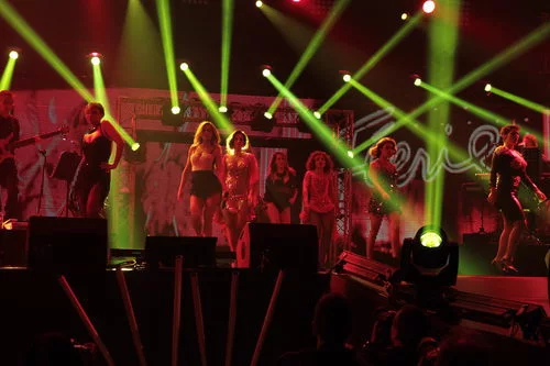 El grupo femenino de 'Operación triunfo 1' interpretan en el escenario "Lady Marmalade" durante el concierto de 'OT. El reencuentro'.