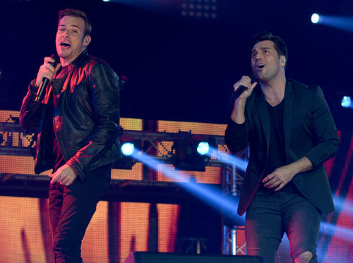 El dúo formado por David Bustamante y Àlex Casademunt en el concierto de 'OT. El reencuentro'