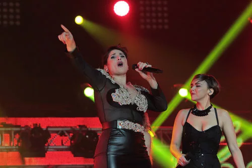 Rosa López interpreta una canción junto a Chenoa en el Palau Sant Jordi durante el concierto de 'OT. El reencuentro'.