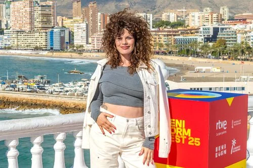 Mel Ömana posa en la rueda de prensa del Benidorm Fest 2025