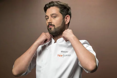 Manu, concursante de Top Chef, nacido en Galicia y trasladado a Barcelona, es copropietario del restaurante Arume en el que desempeña la labor de chef.