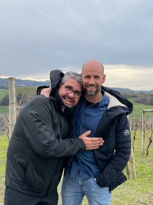 Florentino Fernández y Gonzalo Miró posan en el campo para la primera entrega del programa de viajes de Televisión Española.