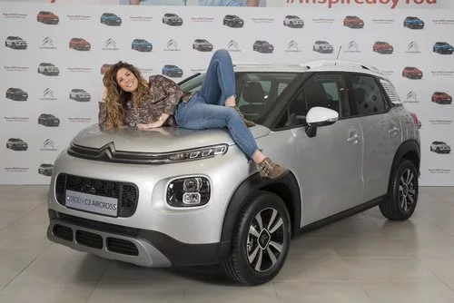 La finalista de 'OT 2017' tumbada en el capó del nuevo modelo de Citröen con motivo de su presentación.