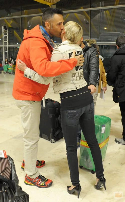 Rafa Lomana saluda a Aran Aznar en el aeropuerto