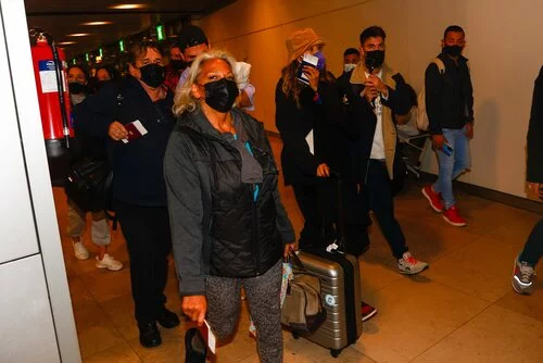 Charo Vega, junto a otros concursantes de la edición como Juan Muñoz, Alejandro Nieto, Marta Peñate, Ainhoa Cantalapiedra o Mariana Rodríguez, en el aeropuerto, camino a Honduras, para la próxima edición de 'Supervivientes 2022'.