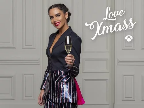 La presentadora de televisión Cristina Pedroche presenta las Campanadas de Antena 3 junto a Alberto Chicote. Pedroche sujeta una copa de champán.