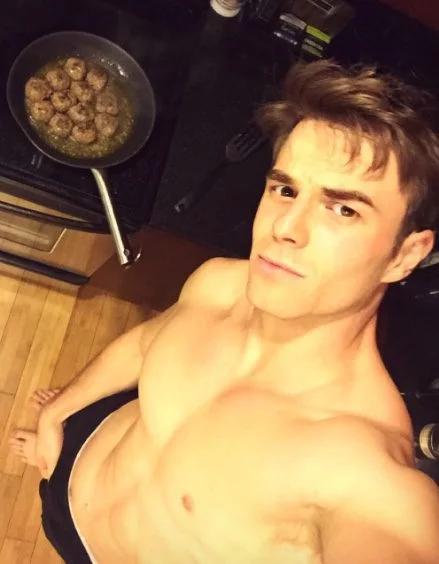 El intérprete australiano Nathaniel Buzolic, conocido por su papel en 'Crónicas Vampíricas', mostrando sus dotes culinarias en una foto sin camiseta.