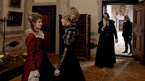 Carolina (Manuela Vellés) e Irene Larra (Cayetana Guillén Cuervo) en la cuarta temporada de 'El Ministerio del Tiempo' junto a Felipe IV (Edu Soto).