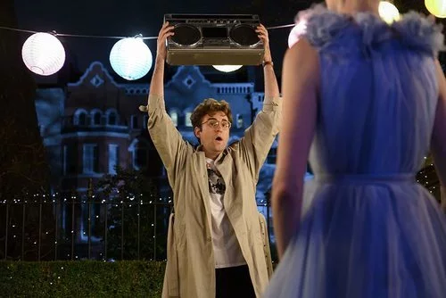 John Reynolds con un radiocasete en 'Cuatro bodas y un funeral'