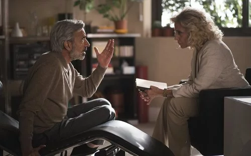 El personaje de Imanol Arias visita a una psicóloga en el capítulo "Desmontando a los Alcántara" de la serie de Ganga Producciones.
