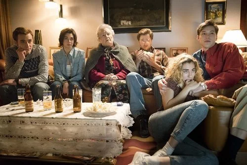 Aitor, María, Herminia, Samuel, África y Pablo se sientan junto a Herminia para ver una película en el salón en el 20x06 de 'Cuéntame cómo pasó'.