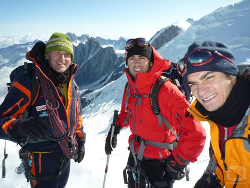 Jesús Calleja con Héctor Barberá y Dani Pedrosa en su ascenso al Mont Blanc para 'Desafío extremo'.
