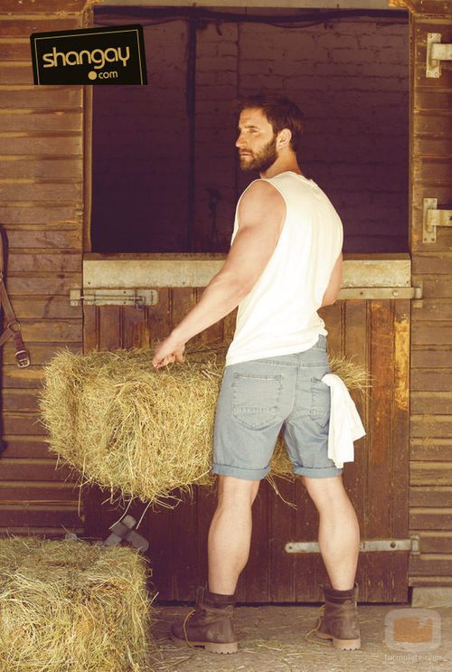 El actor de 'B&&B, de boca en boca' y "Ocho apellidos vascos" recoge el pajar ataviado con una camiseta de tirantes y unos pantalones vaqueros al estilo vaquero.