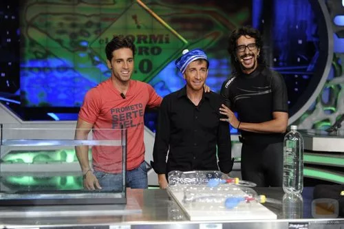 El cantante y el nuevo científico se rien del gorro de Pablo Motos.
