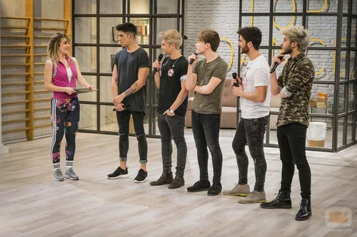 La profesora de la academia de 'Top Dance' recibe a los integrantes de la boyband Auryn para presentar su nuevo tema.