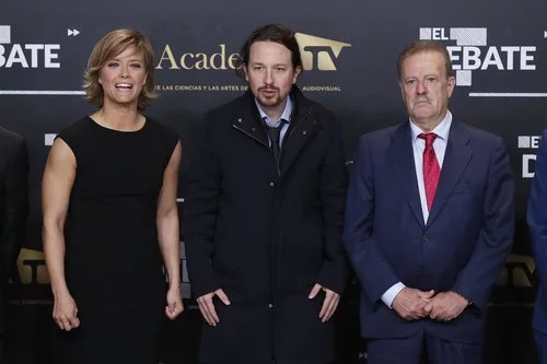 Pablo Iglesias con María Casado y Manuel Campo Vidal en el 'Debate electoral 4-N'