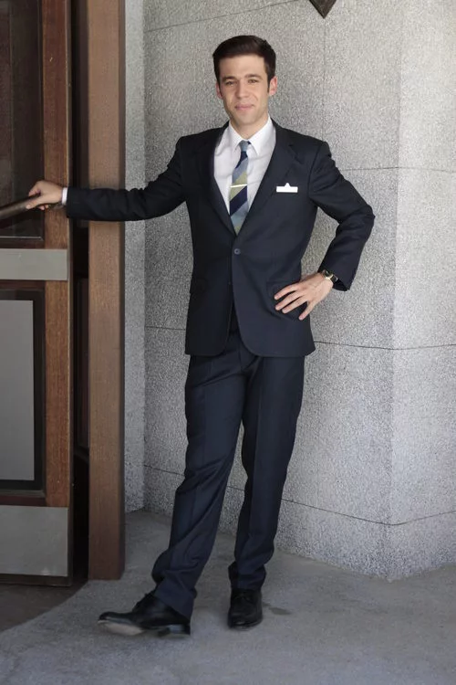 Sonriente, Nacho Montes posa con un traje oscuro con camisa blanca y corbata azul de rayas. El actor interpreta a Manuel "Manolito" Infantes Blázquez en 'Velvet colección'.
