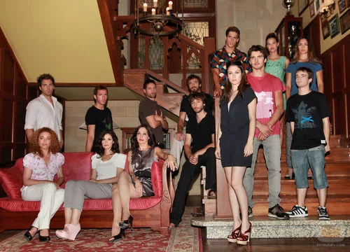 Los actores de 'El internado' posan en la escalera con motivo de la grabación de los últimos episodios de la serie.