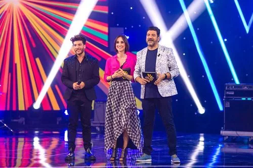 Blas Cantó con los presentadores de 'Destino Eurovisión'