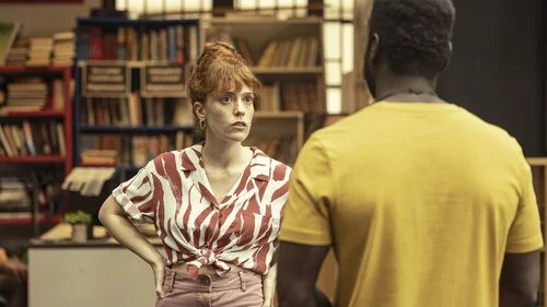 El personaje interpretado por la actriz navarra se muestra seria ante Mahamoud Touré en una de las escenas de la serie.