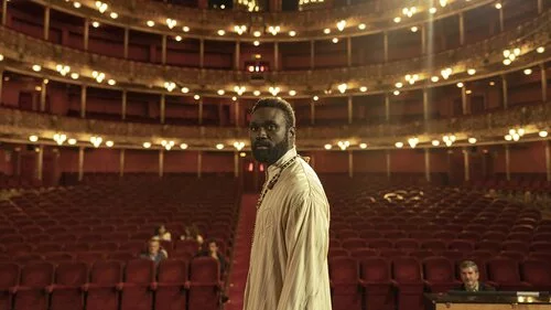 Malcolm Treviño-Sitté en una escena en un teatro en 'Detective Touré'