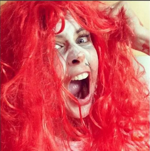 La modelo estadounidense Elisabeth Reyes se enfundo su peluca roja para disfrutar de la noche más terrorífica del año
