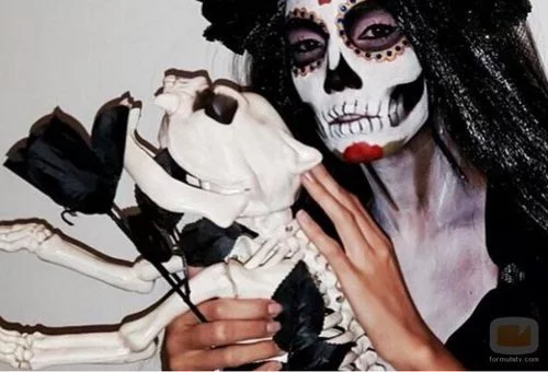 India Martinez aterrorizo a más de uno con su disfraz de novia cadáver para Halloween. La cantante poso junto con un esqueleto de perro