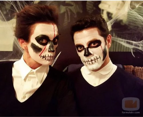 La modelo Nieves Álvarez disfruto de la noche de Halloween con sus amigos con la cara repleta de maquillaje blanco.