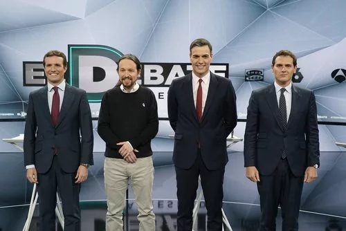 Pablo Casado (PP), Pedro Sánchez (PSOE), Albert Rivera (Ciudadanos) y Pablo Iglesias (Unidas Podemos) en 'El debate decisivo' celebrado por Atresmedia.