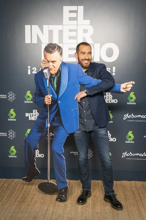 Jorge Ponce, en el programa 2.000 de 'El Intermedio, celebrado en el Florida Retiro y en el que posó con el cartel de Wyoming en el photocall.