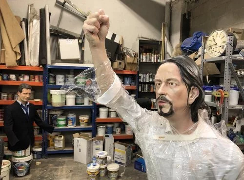 Las figuras de Pablo Iglesias y Pablo Casado preparándose en el taller de Arte y Escenografía de 'El Intermedio'.