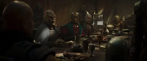 Los personajes de 'El libro de Boba Fett', alrededor de la mesa