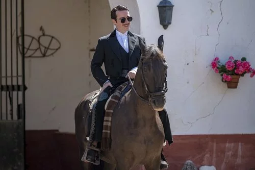 El actor, que interpreta a uno de los protagonistas de la serie de Telecinco, monta a caballo en una de las escenas.