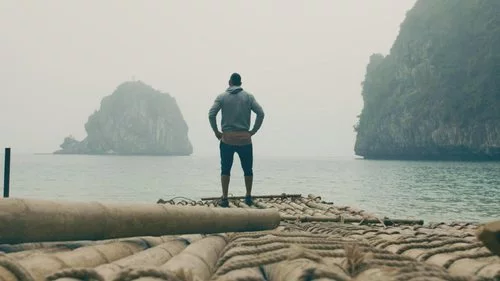 Uno de los concursantes de la segunda temporada de 'El Puente' observa la construcción de la plataforma que les llevará hasta el tesoro.