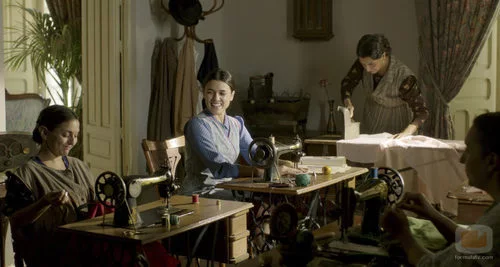 Escena de la serie en la que aparecen estas costureras en su taller.