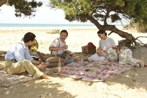 Personajes de 'El tiempo entre costuras' comen en la playa