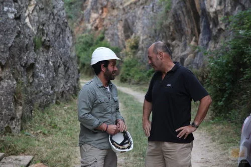 El cocinero conversa con uno de los miembros del equipo del yacimiento de Atapuerca.